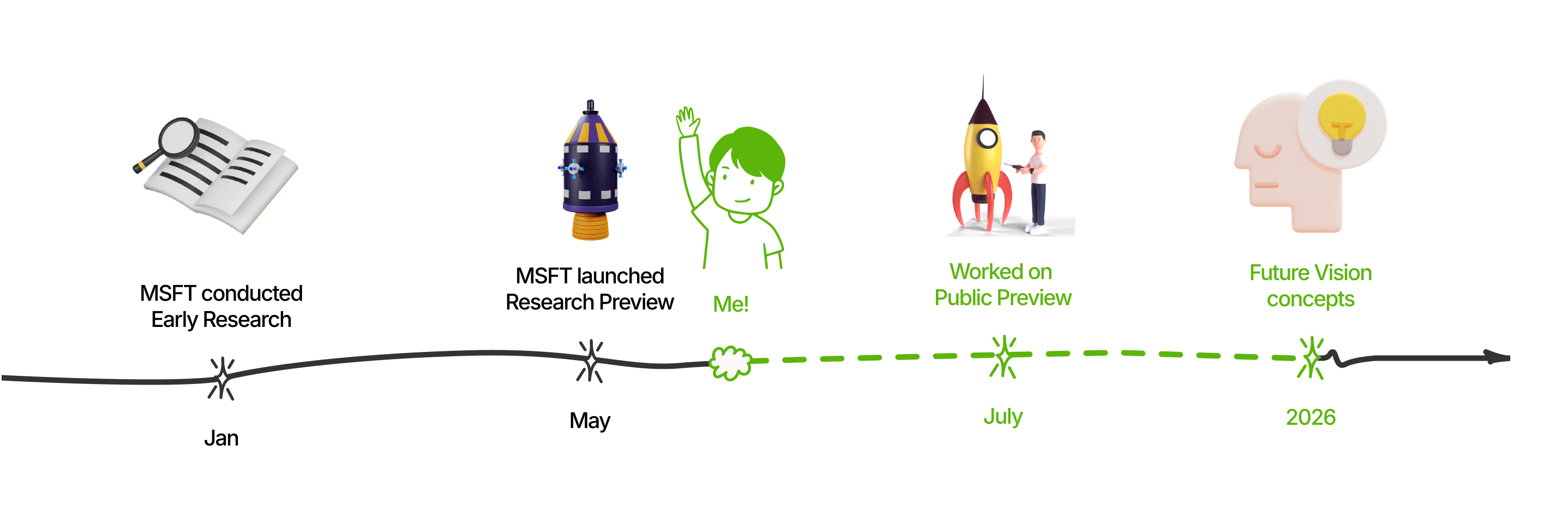 I worked closely with partners to frame ideas across different timelines from near-term improvements that could be delivered for public preview in July, to longer-term concepts that shaped how the experience might evolve over the next year or two.